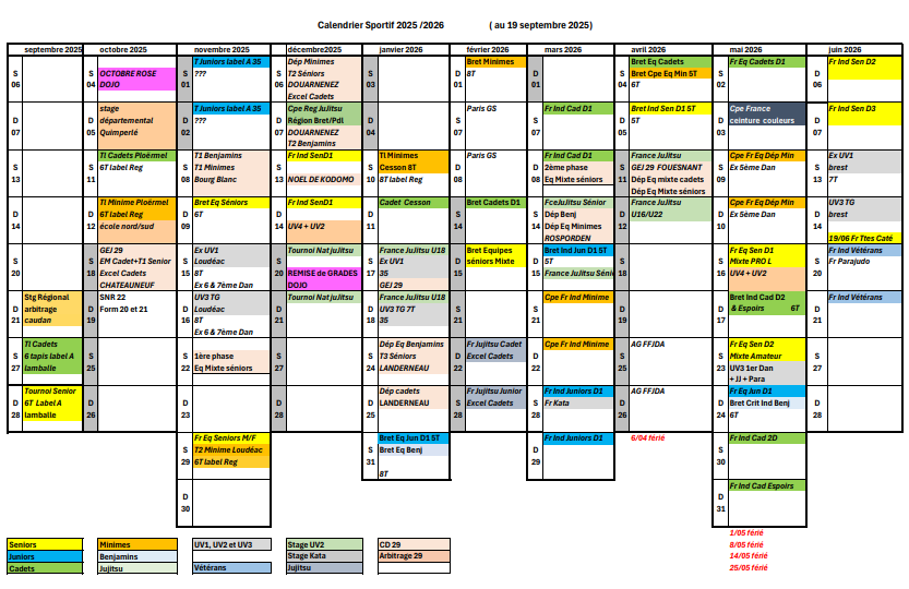 calendrier à télécharger :